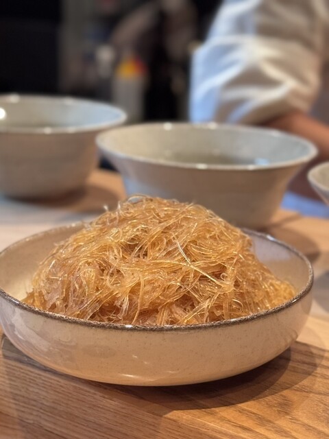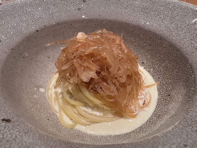 リングイネと同量?それ以上の量のたっぷりの葦切鮫鱶鰭でした。ジャクジャクとした食感、美味しいソースを含んだリングイネと渾然一体で今までいただいたフカヒレで一番美味しい食べ方だと感じました。
