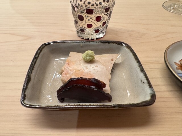 まるで揚げたように焼かれたメジマグロの皮目と脂の溶け感、鰯の海苔巻きの口内調理、おつまみ味噌漬けセットとあん肝と甘い日本酒のペアリング、遊び心ある鱶鰭のフリットとお酒がすすみます。
