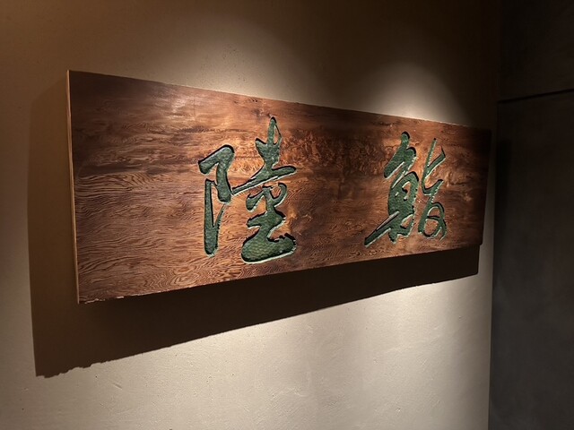 一枚板の木彫り看板にまず目を奪われます。