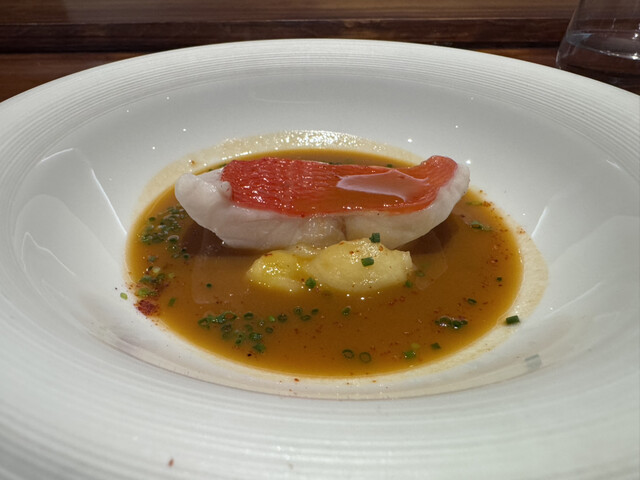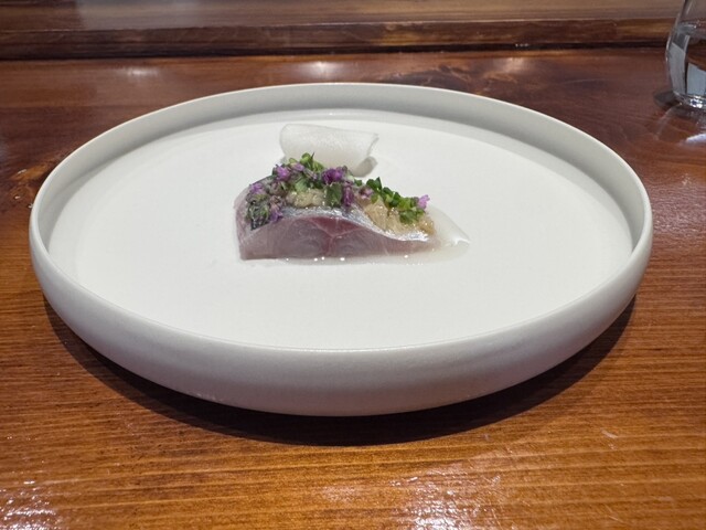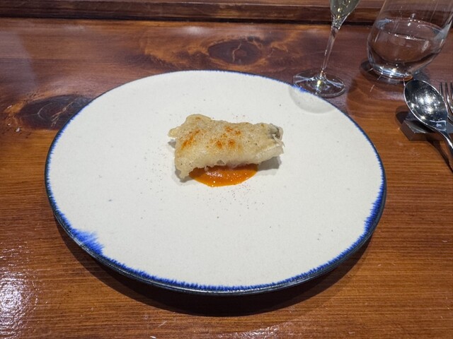 水分量の多いカマスはフリットにすることで「これがカマス⁉︎」と驚くほどグググッと膨らんでいます。サスエ前田魚店の魚でしか成立しない味わい、調理だと感じました。
