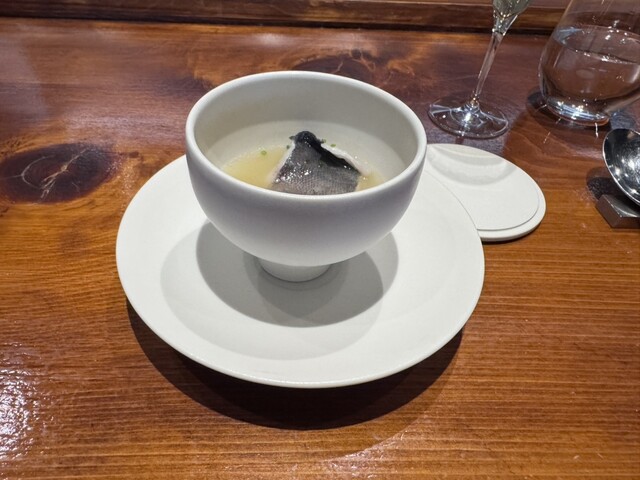 ◆金目鯛 活け〆の金目鯛 じゃがいものピューレ 銀杏 ブイヤーベースのスープ
