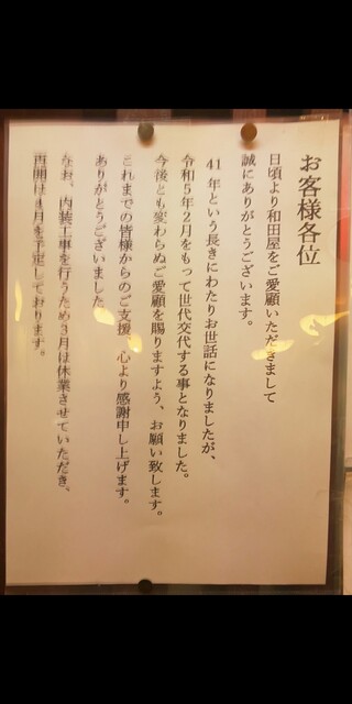 ほんとに和田屋さんには長年、空腹を満たしていただき大変お世話になりました。