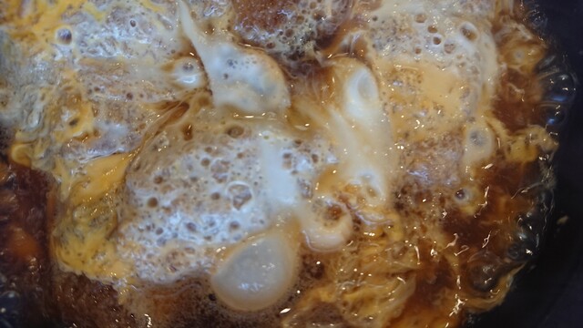 かつ煮なべはぐつぐつ煮えたぎった鉄なべで供される。