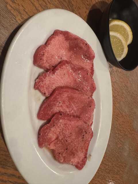 続く逸品料理は、肉の前にしっかりとした味のアクセントを与えてくれる一皿。料理の流れが計算されていて、次に出てくる牛タン塩がより引き立ちます。牛タンは厚みがあるのに柔らかく、噛むたびに旨味がじゅわっと広がる上質な味わいでした。