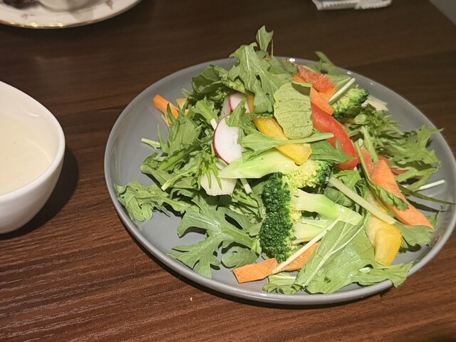 最初に頼んだサラダからすでに美味しくて、シンプルなのにドレッシングの酸味や野菜の鮮度が抜群。そこから一気に期待が高まった。メインの和牛テールの煮込みは、スプーンを入れた瞬間にほどける柔らかさで、口の中でとろけるような食感。しっかり煮込まれているのに脂っこさはなく、旨みだけが濃縮されている。