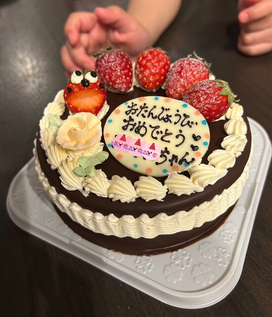 今回はケーキを食べられない娘用にイチゴを追加でお願いしました。