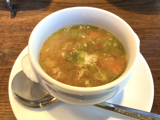 スープも具沢山のコンソメで良き〜
