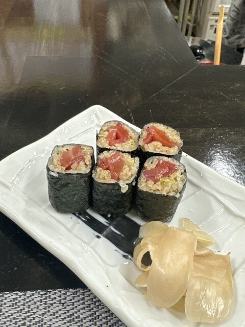 寿司は赤酢で、まさか立ち飲み屋さんで出るとは