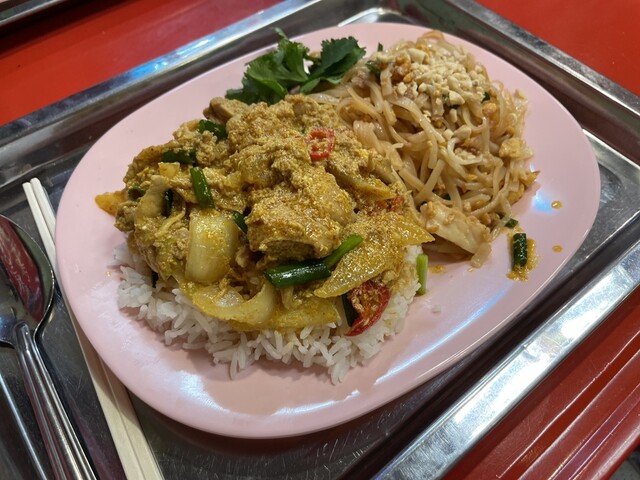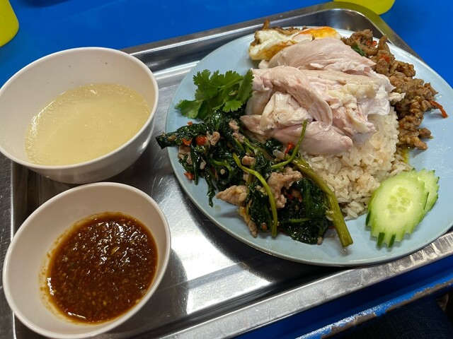他の2つは、カオマンガイとパックブーン・ムー(豚肉と空芯菜炒め)をチョイス。