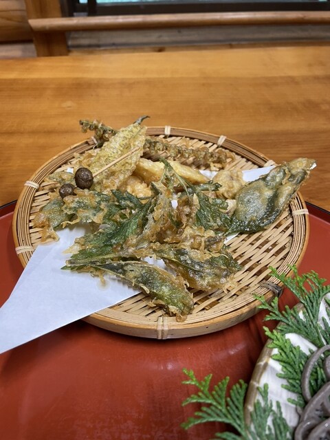 秋の天ざるのラインナップは色々ありましたが初めて食べるムカゴとヨモギが抹茶塩とマッチして美味しかったです。