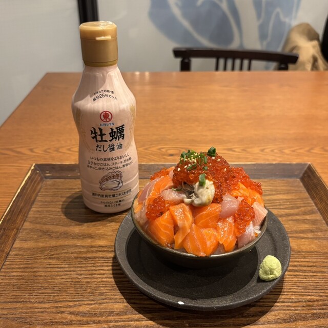 サーモンやマグロ、ぶりなどを豪快にたっぷりのせた豪華な丼!