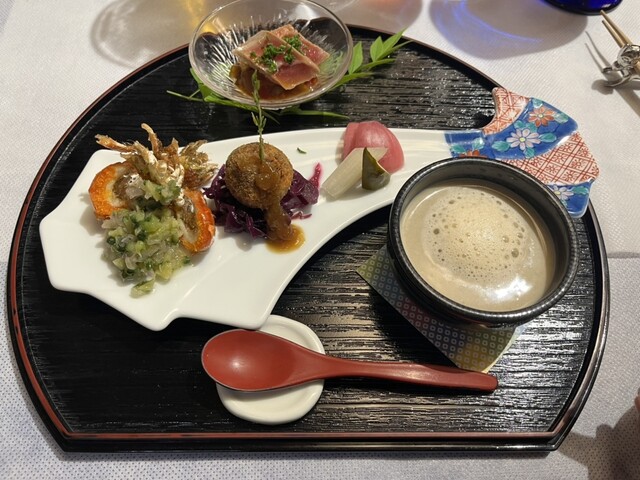 夫婦でランチ利用。メニューはおまかせコースのみ。税込3850円20品。