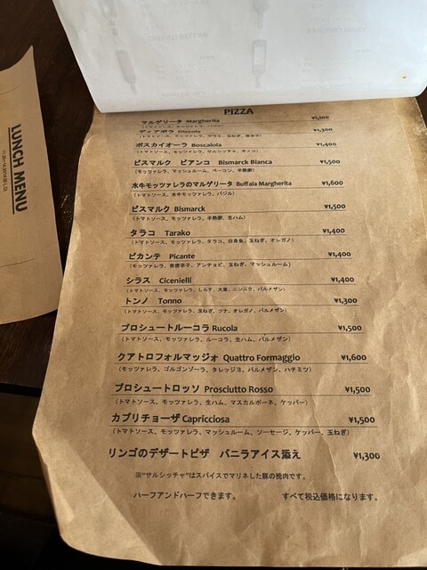 ※小さなお店ですが、ピザ窯を温めて営業されてるのでピザ注文必須の注意書きがあります