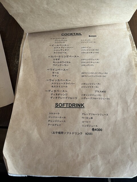 ランチビール300円、ランチワイン400円、ソフトドリンク200円、キッズドリンクは100円です。ランチドリンクのコスパも◎