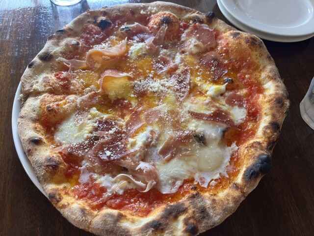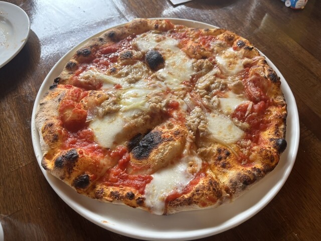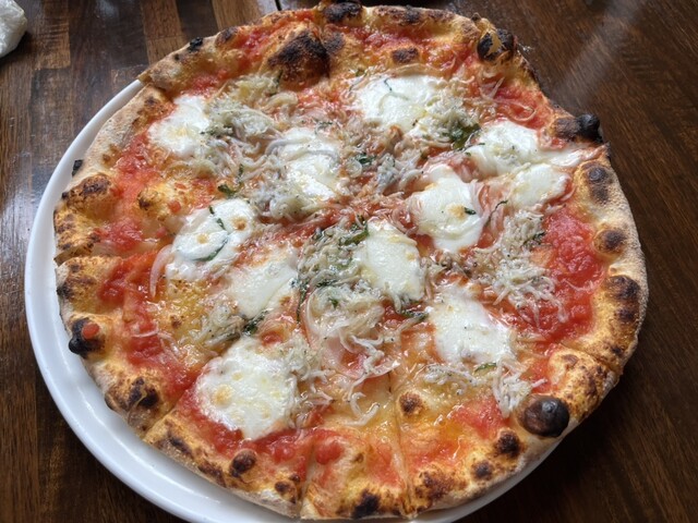 頼んだピザは水牛モッツァレラのマルゲリータと、シラスと、ツナ&玉ねぎのトンノ。水牛はモッツァレラは、普通のマルゲリータよりクリーミーでした。