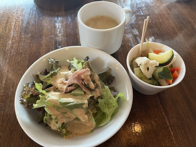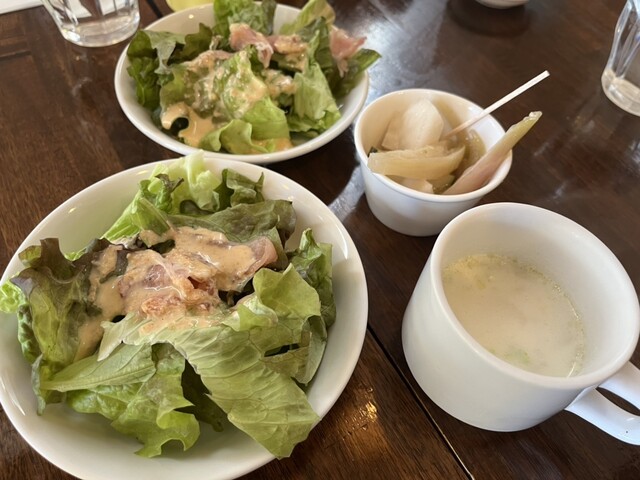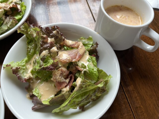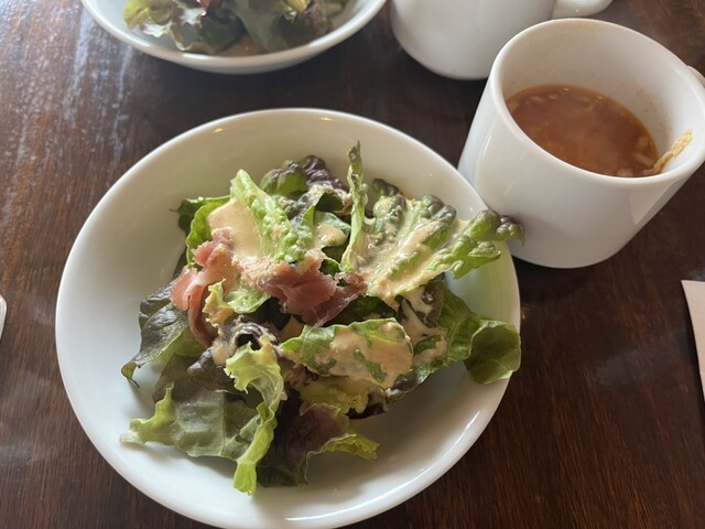 ランチセットのサラダのドレッシングと、丁寧に作られた細かな具材の入ったスープももちろん美味しい。