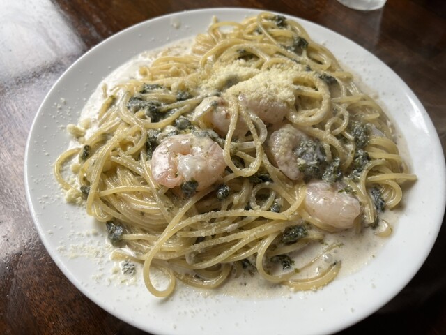 ビスマルクと、マルゲリータと、青海苔と海老のクリームパスタを注文。