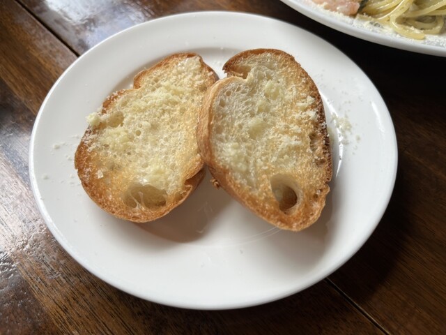 初めてガーリックトーストを追加してみましたが、パスタソースの余りを付けて食べるのに良い。