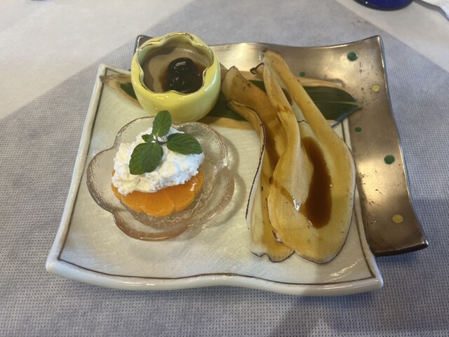 シェフのおまかせコースは、前菜の盛り合わせ、フォアグラ、魚料理、口直しの氷菓、肉料理、デザート盛り合わせ、パン、食後の飲み物が付きます。メインの肉料理だけで無く、フォアグラと魚料理もボリュームがあり、パンもおかわり出来ます。見た目の美しさから、全ての味付け、こだわりの食材、大満足です。