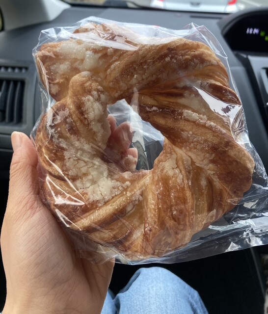 クロワッサンベーグルは、サクサクもちもち生地をベーグルの形にしてあって、砂糖が溶けて飴みたいになってる部分もあって手が止まらない系です!