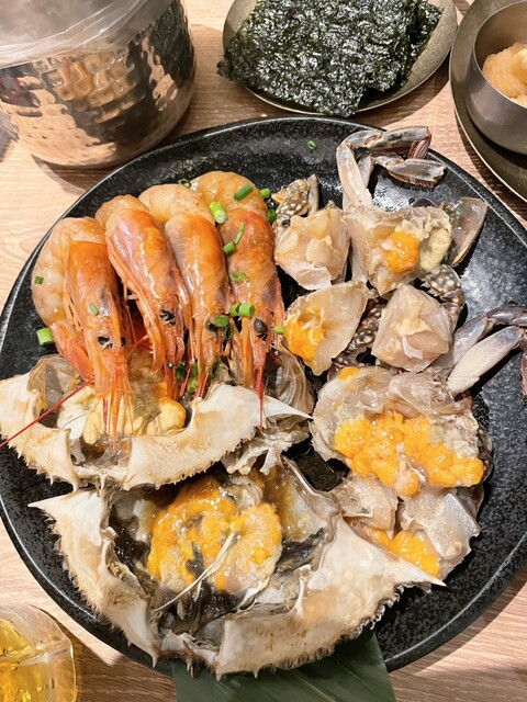 沢山のパンチャン、カンジャンケジャン、カンジャンセウ、ピビンバ、キムチチゲ… とにかくボリュームたっぷり!お腹はち切れそう!また来ますねー!コマウォヨー!
