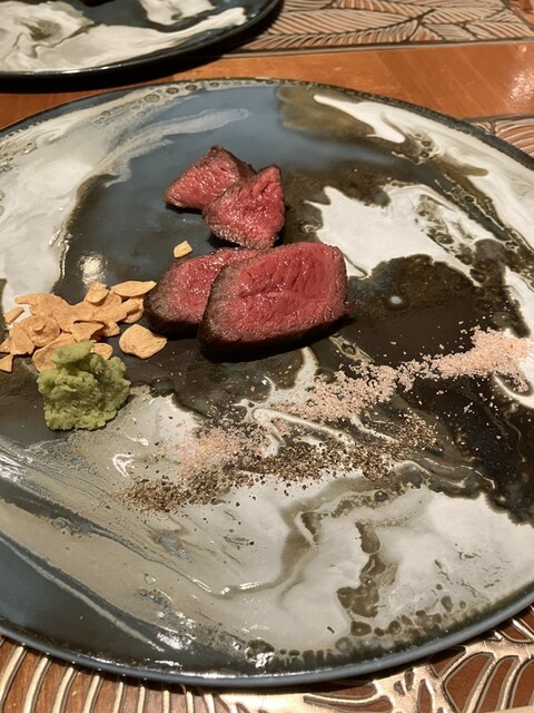メインの黒毛和牛カタサンカクのステーキは、ぱっと見では赤身のような断面ですが、非常に柔らかく噛むほどに脂の旨みが溢れ出す絶品です!
