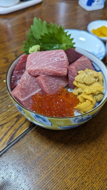 マグロの聖地でいただくマグロは感想を言うまでもなく美味い!赤身は血生臭くなく新鮮で、トロは名前の如くトロトロ(笑)具材を選べるミックス丼でしたのでイクラとウニを選びましたが、新鮮な食材は言葉を失うほど、めちゃくちゃ美味しかったです。美味い飯を食うときは自然と口数が少なくなりますので、あっさり完食してしまいました!
