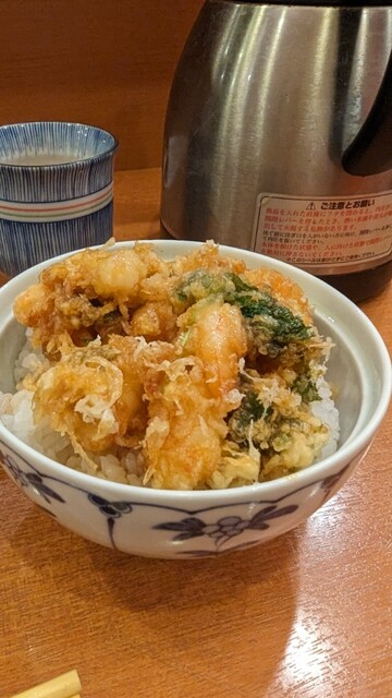 メニューは御膳を選び、車海老、キス、帆立の貝柱、ヤングコーン、茄子、ブロッコリー、エリンギと、どれも最高に美味い!〆は海老のかき揚げを茶漬けか丼かを選べ、悩みに悩んだ結果、ガッツリ丼を選びました。味はもちろん文句無しでタレが少なめで美味かったです!