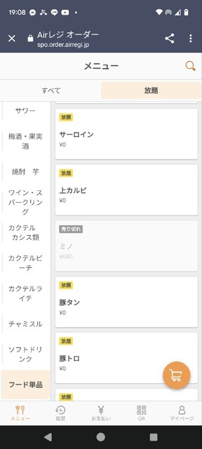 スマホに表示されメニューから注文するので