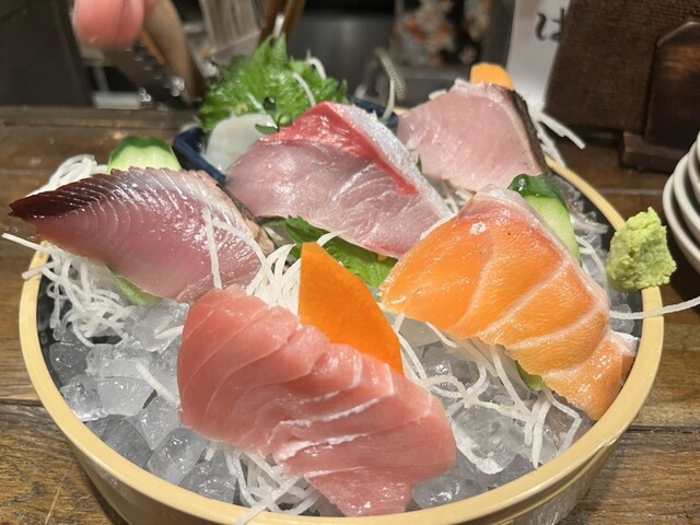 刺し盛りにサメの心臓、白子ポン酢と本当に魚が美味しい。
