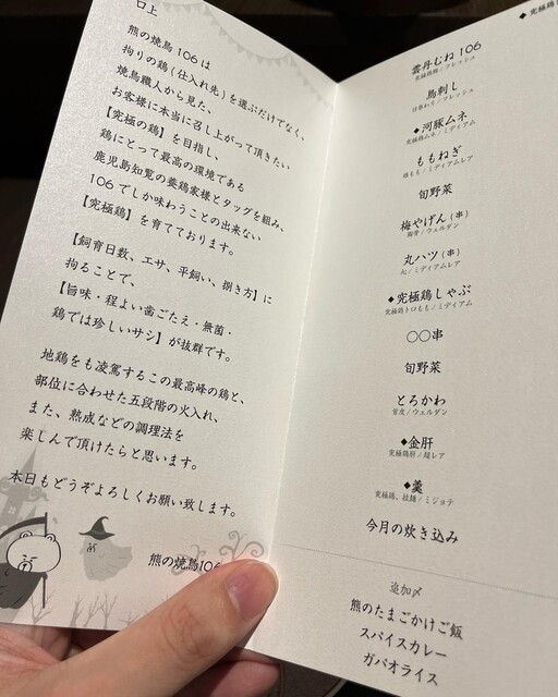 熊の焼鳥106でしか味わえない”究極鶏”が食べられます。