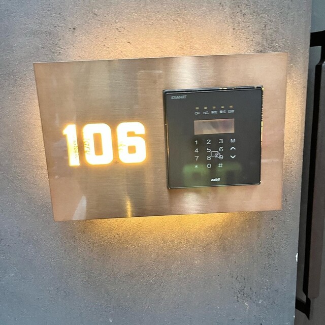 扉の前には可愛いクマのイラストが描かれた郵便ポスト。その横に小さな小窓。