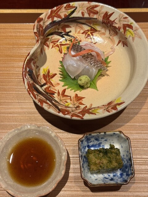 もちもちした歯ざわりがたまらないもみじ鯛のお造り。