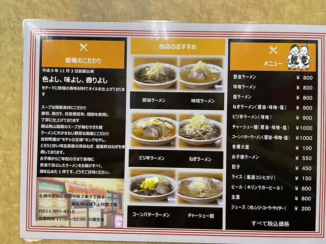 GW2日目の21:00、新千歳空港から30分、新札幌に到着。遅い夕食ですが、やはり味噌ラーメンが食べたい!ということで改札口を出てすぐの龍竜さんを訪問。注文は、クチコミでどなたかがオススメしていたネギ味噌に餃子。5分ほどで着丼。やはりというかさすがというか、豚骨、鶏ガラ、昆布に鰹節、濃厚すぎず、旨味を確かに感じるスープ。野菜も国産にこだわっているとのこと、北海道産の白ネギがこれでもかと山盛りに。角切りチャーシューは塩味濃いめですが、たくさんは入っていないので、私にはちょうどよかったです。餃子は皮がもちもちですが、重すぎず、あっさり食べられます。お財布にも優しく、ありがたき幸せ。ごちそうさまでした。