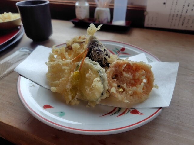 天ぷら、どれも美味しい!二人で一皿、ちょうど良い量でした。ぎんなん旨し!(^p^)