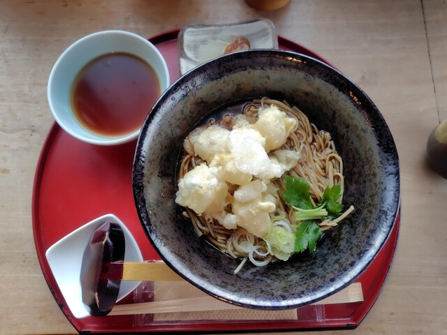餅天のせ仁王そば(温)セット天ぷらを頼んでるのでつゆ付