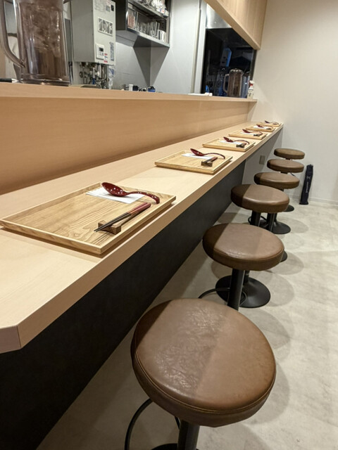 鶏料理「玉ひで」さんの並びにある店内は鶏の美味しい匂いが漂う白基調の和風で縦長な、今日現在厨房向きカウンター6席のみで(本オープン時は手前に約5席増えるみたいです)お水は出して頂きました(奥にお手洗いあり)。