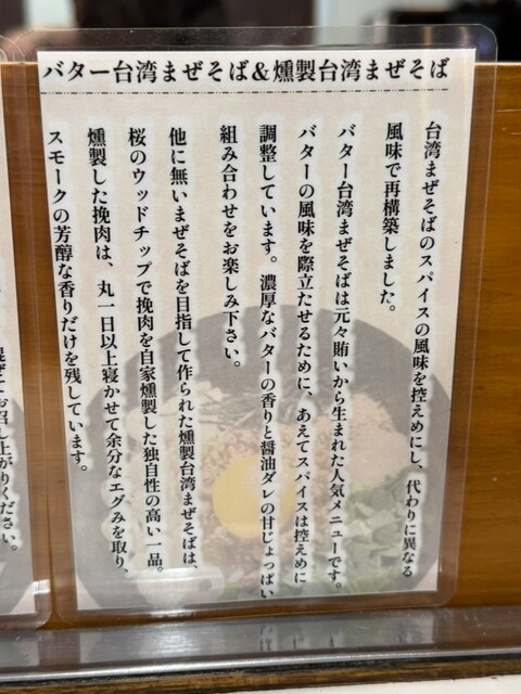 卓上のバター台湾まぜそば&燻製台湾まぜそばの説明書