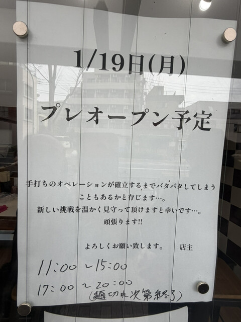 店頭のプレオープンの案内