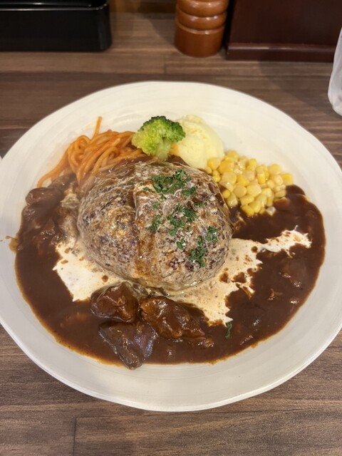 牛すじの入ったデミグラスソースとハンバーグ本体を贅沢に味わえる、超満足のランチでした!!