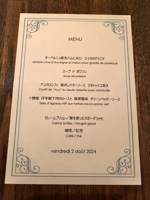 鮎のコンフィのあまりの「カリフワ感」に言葉を失ったのと(笑)、付け合わせのラタトゥイユや焦がしバターソースと一体になったときのトータルの仕上がり具合が尋常でないです。