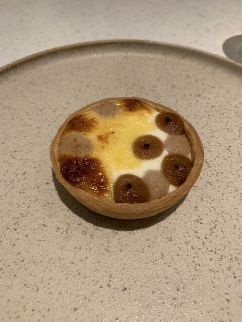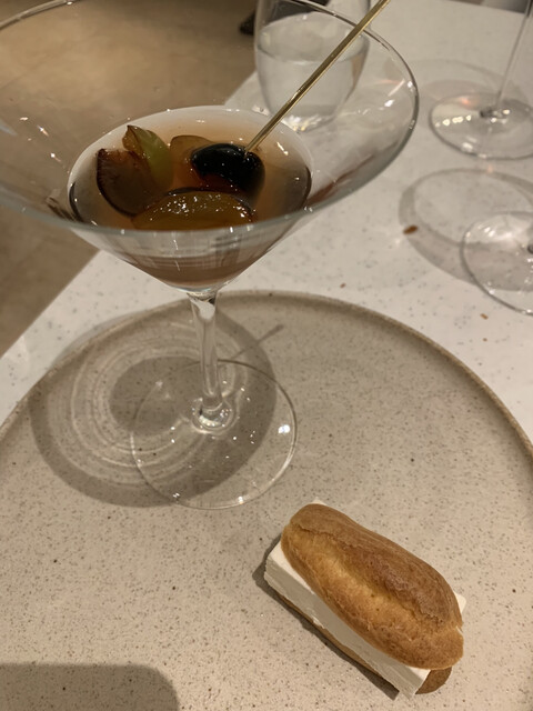 →まさかフレンチでハーフ&ハーフが食べられるとは(笑)アミューズにしてはサイズが大きめですが、中身がかなりクリーミーで、ペアリングの1杯目とともに流れ込むように食べてしまいました…
