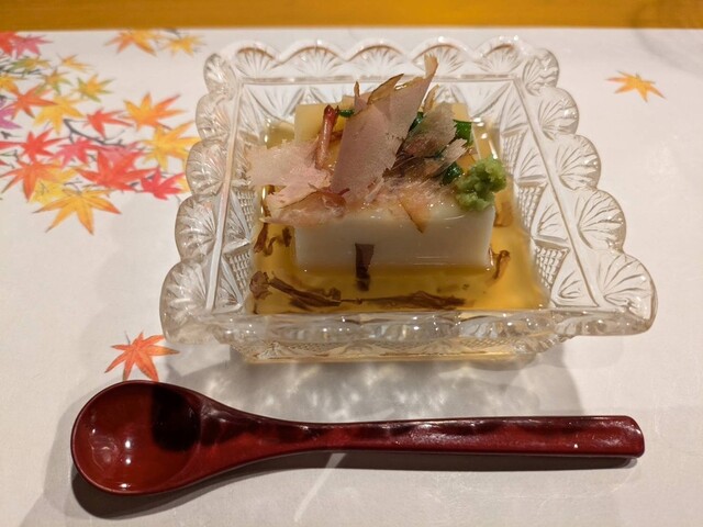 今回は特に、スミイカのお刺身、あわびの肝和え、猪のつみれ?のお椀が印象的でした。