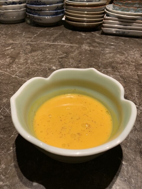写真のかぼちゃのスープはお通し。(価格不明)