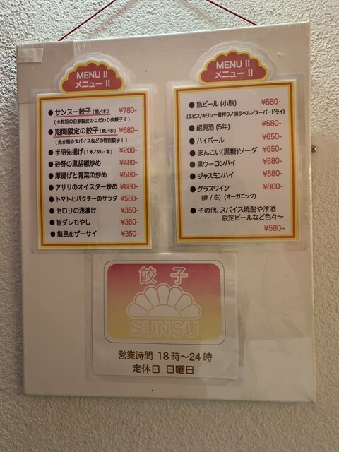 オリジナリティ溢れる餃子に惹かれて訪問しましたが、店内の独特な雰囲気(アジアンというか、いろんな国や地域の入り混じったカオス感が良い居心地)と店主さんの気さくな感じがとても素敵でした!