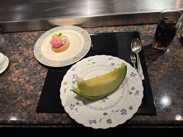 鳥取県産の山の幸海の幸を使った鉄板焼きを楽しめました。刺身と、間違えて錯覚しそうなくらい柔らかくて、新鮮なお肉や、もやし、えりんぎ、茄子などの新鮮なお野菜の鉄板焼き、