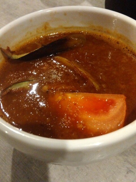 スープカレーとカレーラーメンの中間くらいな味わいですが、とにかく旨い。