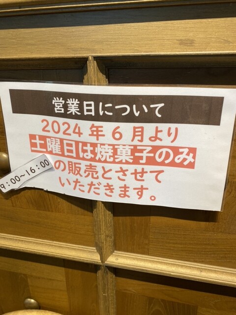 2024年6月〜土曜日は焼き菓子のみの販売になりました。