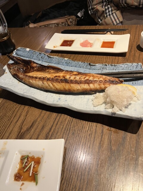 サバ半身の塩焼き、クリームチーズのマグロ酒盗あえを頂きました。