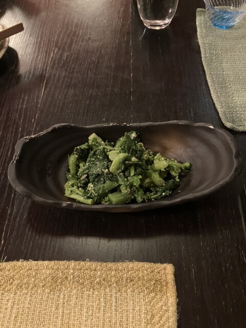 生ビールの後にマグロの刺身、菜の花のナムル、